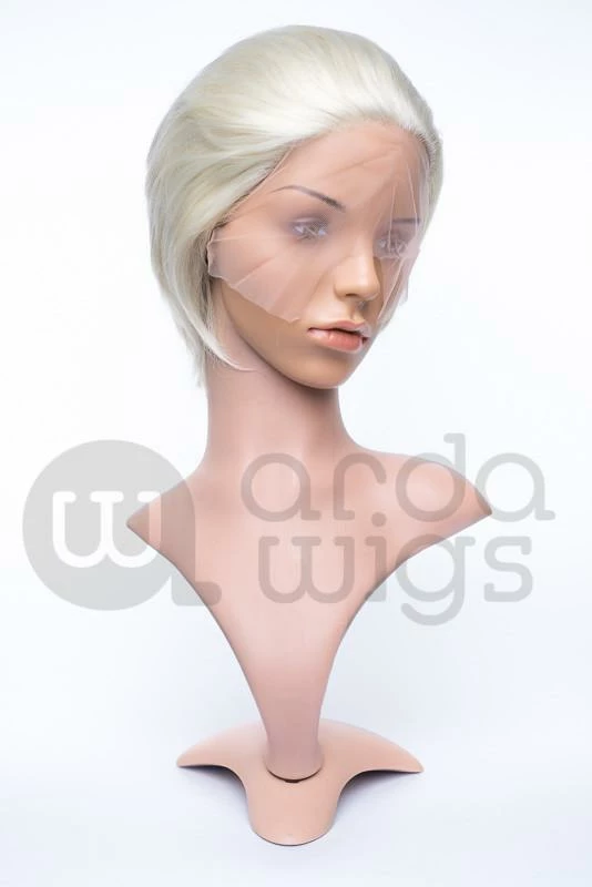 The top of the Cady style has long front bangs swept back, and is thicker than the back for ease of spiking. The back of this wig is shorter and not suitable for heavy spiking without re-wefting. Lacefronts are the best way to have a natural-looking hairline and are meant to be attached to your head with spirit gum or lacefront tape.