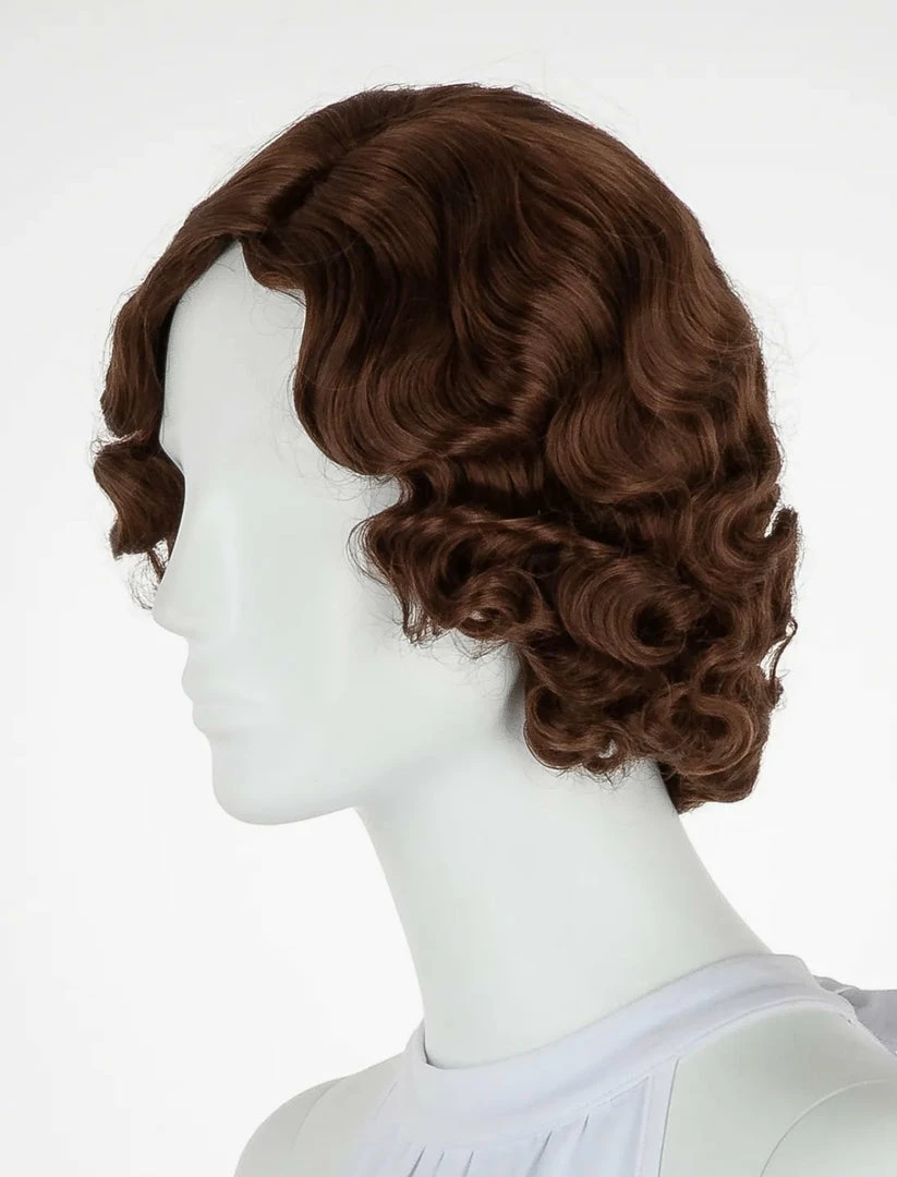 Josephine is a complex finger wave wig with a bit of length in the back to cover the nape of the neck. The fibers measure 12″-13″ (30.5-33 cm) with the wave from crown to end. This style includes 4 bobby pins to secure the waves while the wig is in storage. The skin part is located off-center on the right side when wearing. Perfect for fashion or cosplay. Wear it as-is, or let those bobby pins go and tease out for maximum volume!