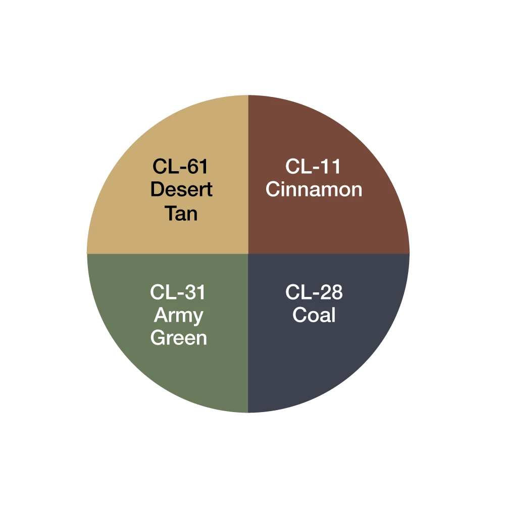 The Camouflage Wheel features our richly pigmented creme color formula with four shades that allow artists to effortlessly create camouflage effects on the skin. Our creme colors Desert Tan, Cinnamon, Army Green, and Coal replicate traditional camouflage shades.