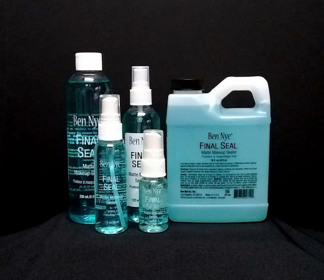 Apply over any completed makeup for a smudge and water-resistant finish. Final Seal keeps makeup in place even on performers who perspire heavily. Add to Liquid Paints (about 10%) for greater durability. Take precaution around eye area and on sensitive skin. Remove with Hydra Cleanse. Mint fragrance. Made by Ben Nye. Expect 20-50 applications per ounce.