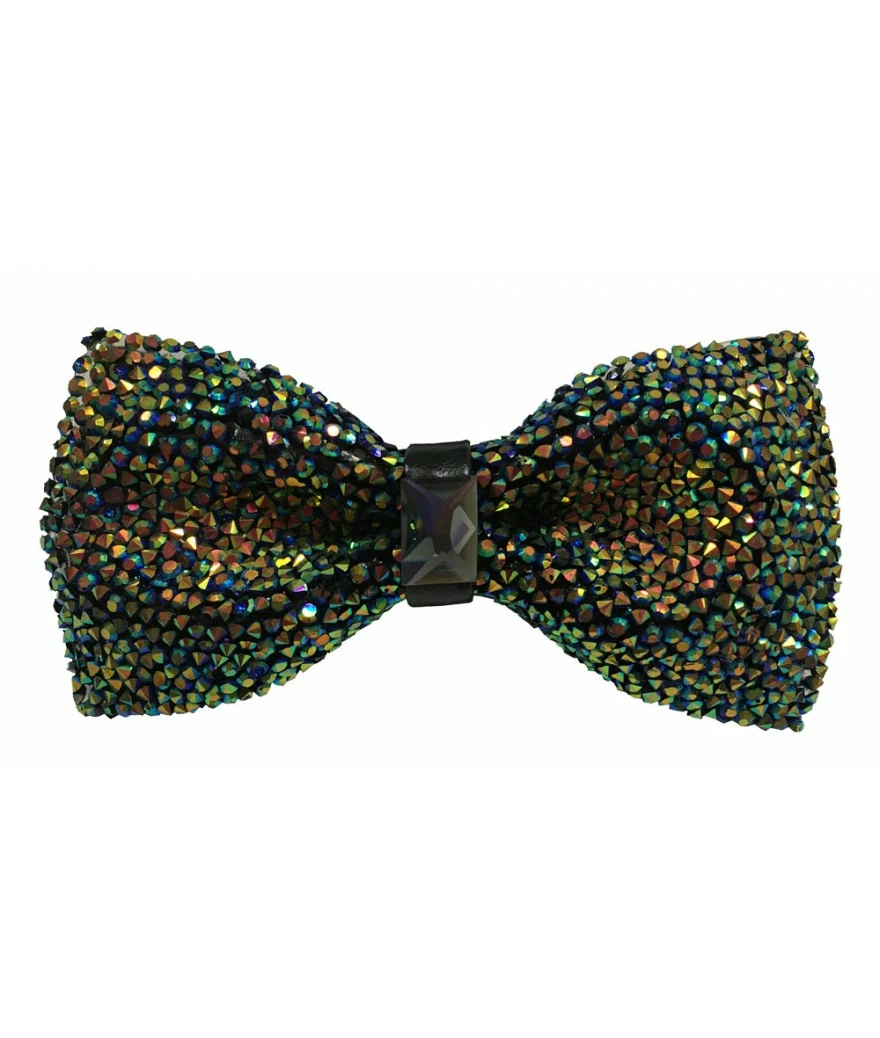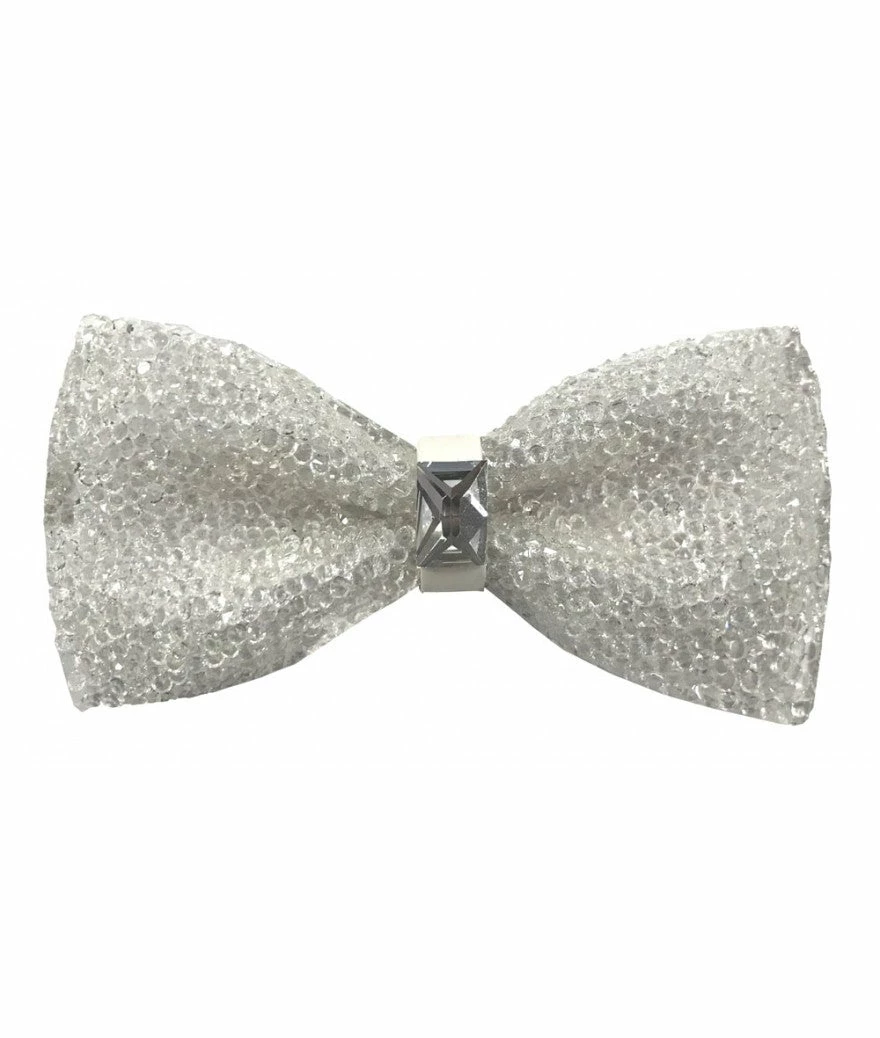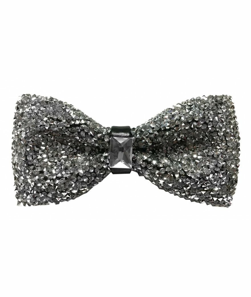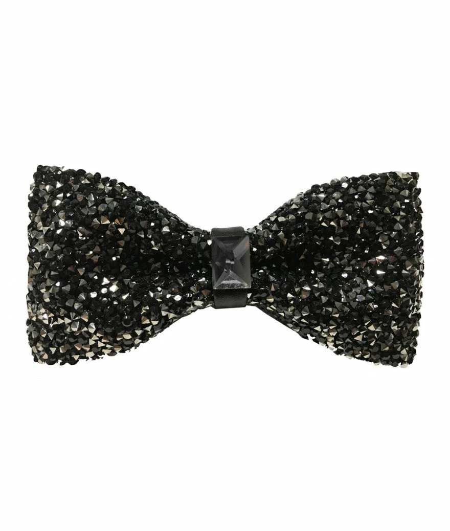 Glitter adjustable bowtie with crystal at center.