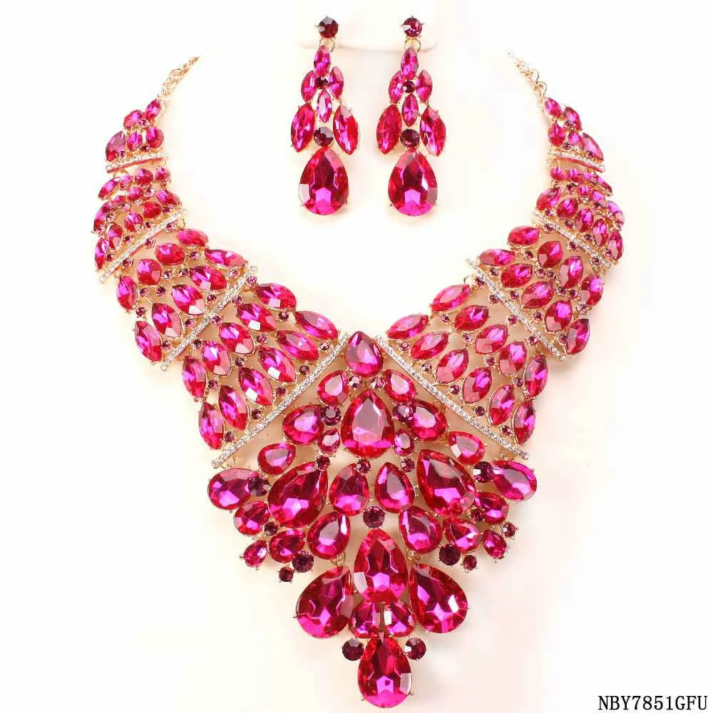Ceci Jewelry, Inc. Necklaces & Earrings Hot Pink Rhinestone Necklace And Earring Set
