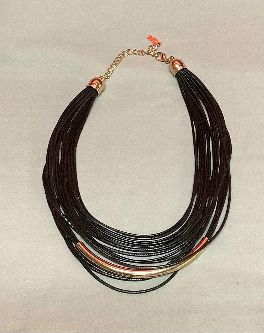 Fame Accessories Necklace Leather Black W/ Gold Tube Necklaces & Earrings