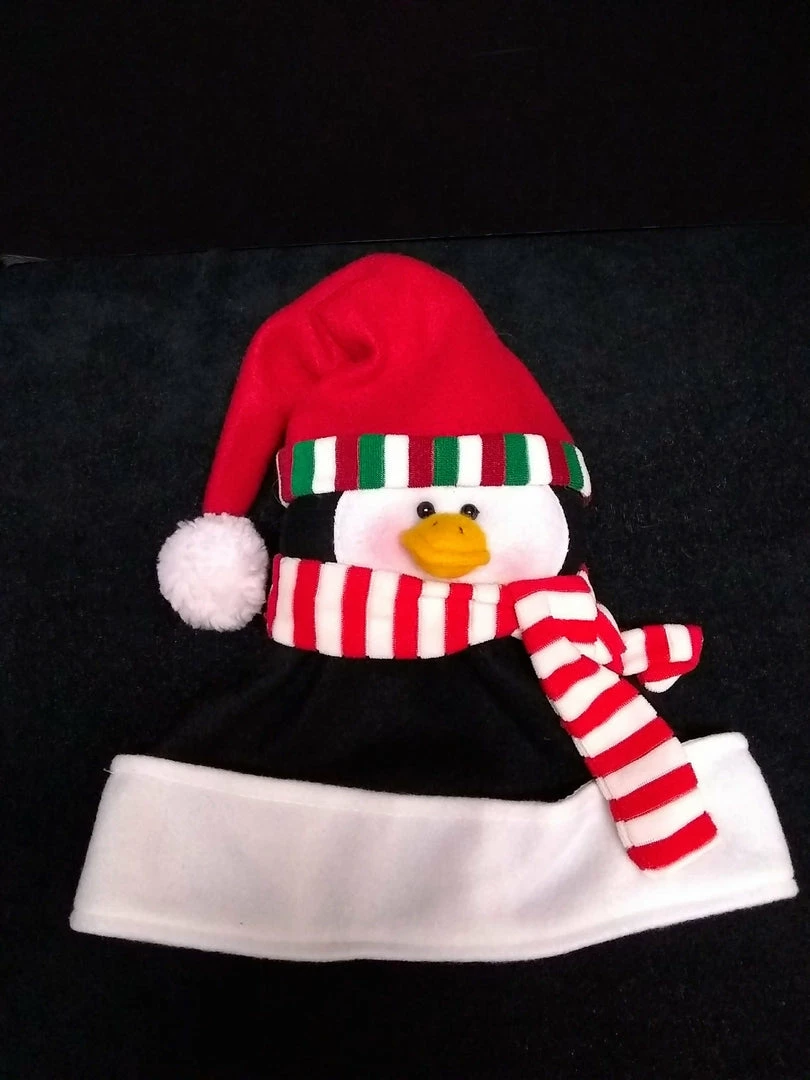 Includes felt hat with penguin face and attached hat/scarf