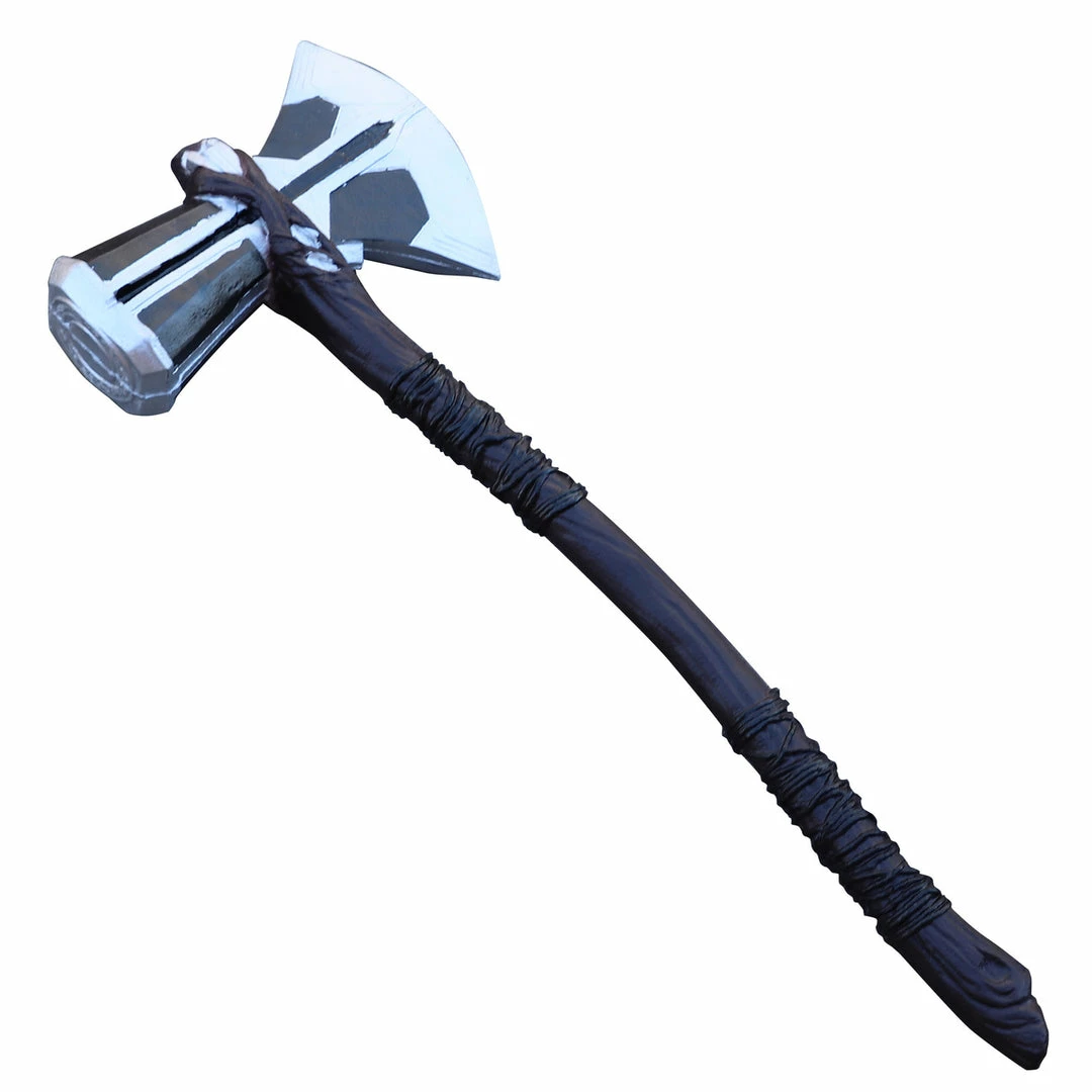 “A king’s weapon. Meant to be the greatest in Asgard. In theory, it could even summon the Bifrost.” These were the words spoken by Eitri of the extraordinary weapon intended for the king of Asgard. Given the name Stormbreaker, this axe hammer is forged by Eitri from ingots of Uru and the arm of Groot. This powerful weapon increases Thor’s lightning power exponentially, and can summon the Bifrost bridge. Hold the power of Thor in your own hands with this foam replica battle axe. The axe is made from durable polyurethane foam and has a 10mm core for strength. Hand painted details make this axe the perfect accessory to your Avenger’s cosplay. Overall Length: 28.25 inches, Blade Length: 7.5 inches, Handle Length: 24 inches