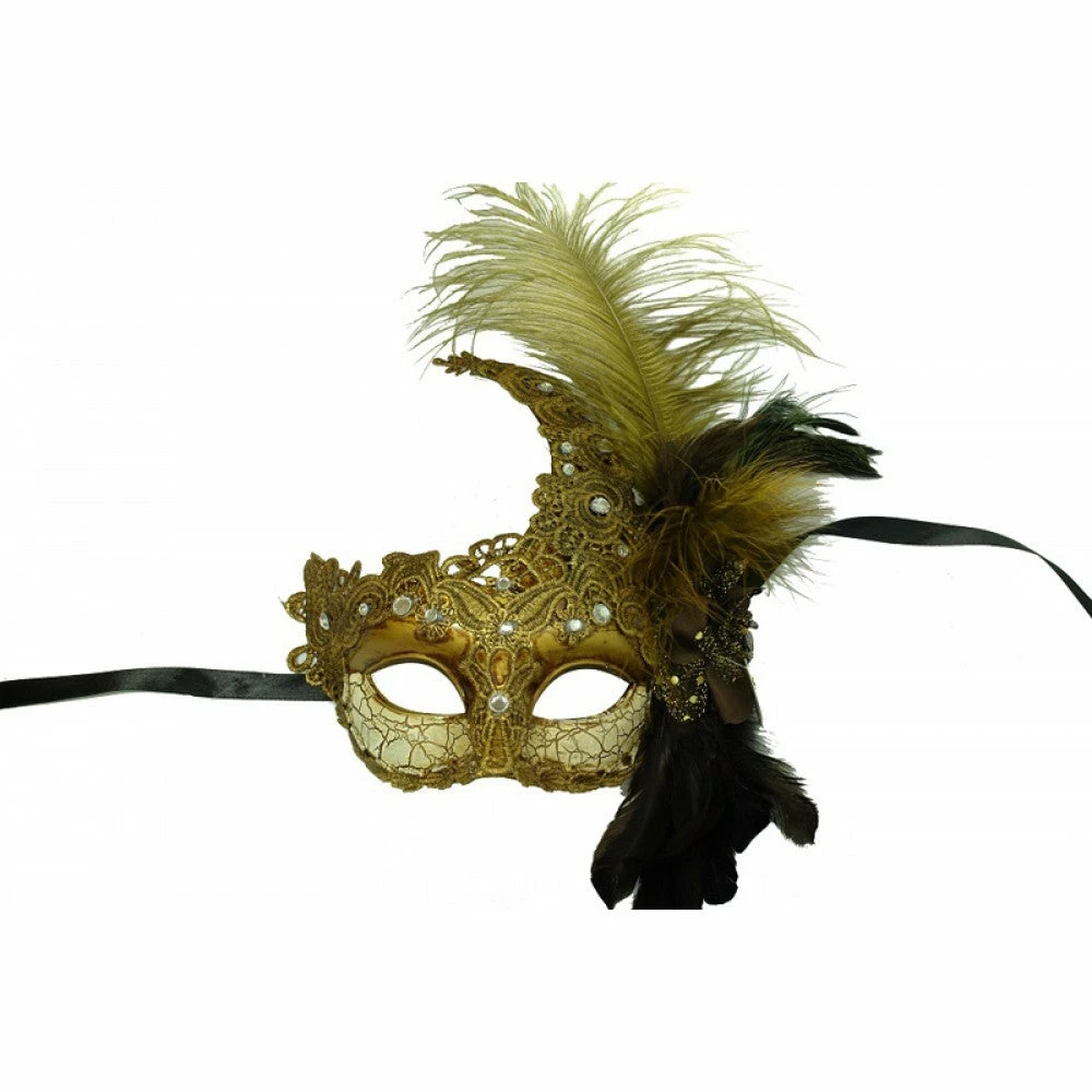 KBW Global Corp Masquerade Masks Masquerade Crescent Lace W/ Feathers