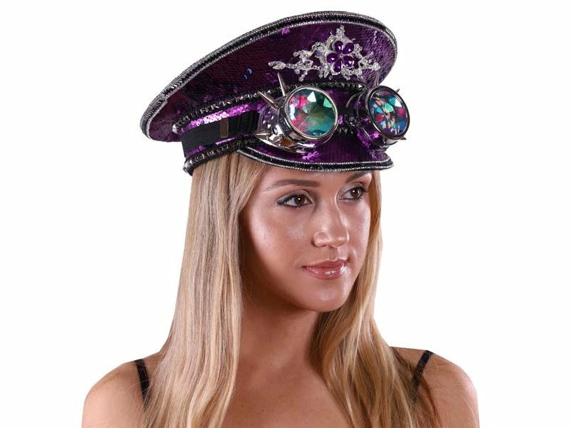 KBW Global Corp Sequin Festival Peaked Cap W/ Goggles In 3 Colors Sequin Hats