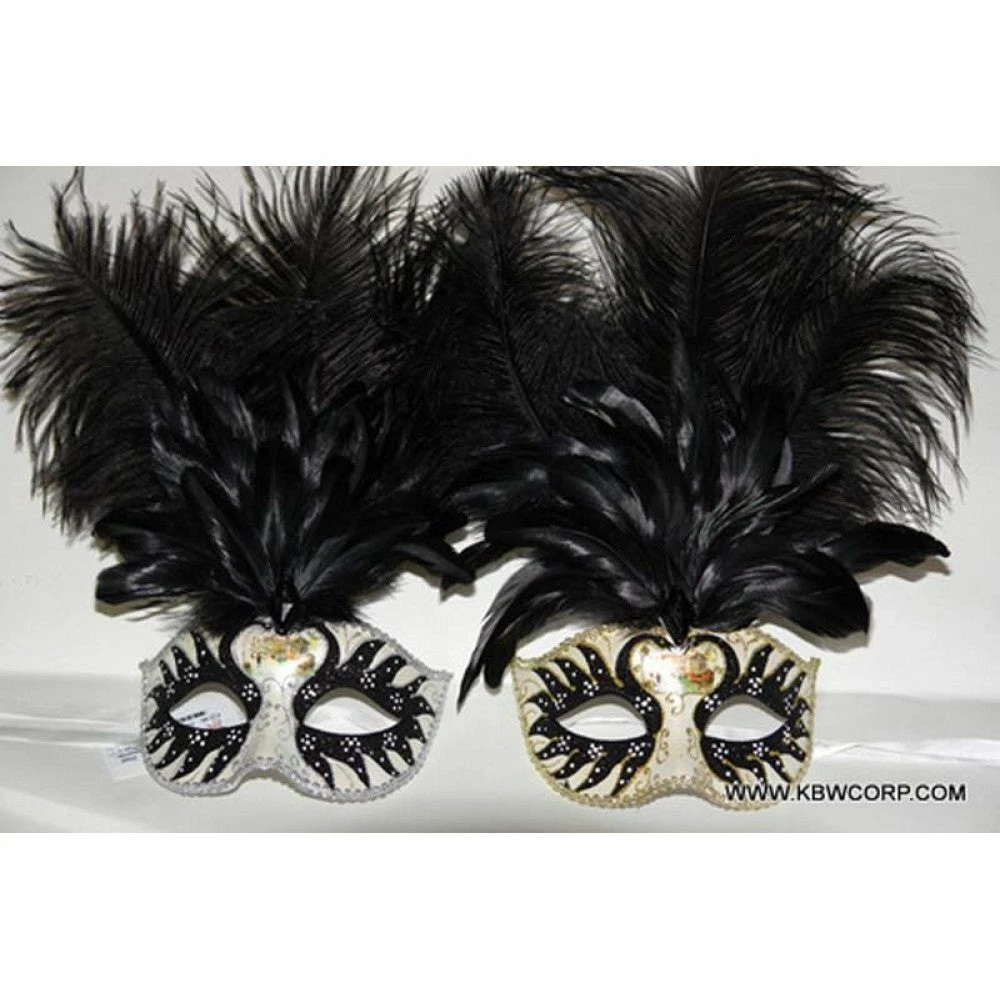 KBW Global Corp Venetian Mask Swan Motif W/ Feathers
