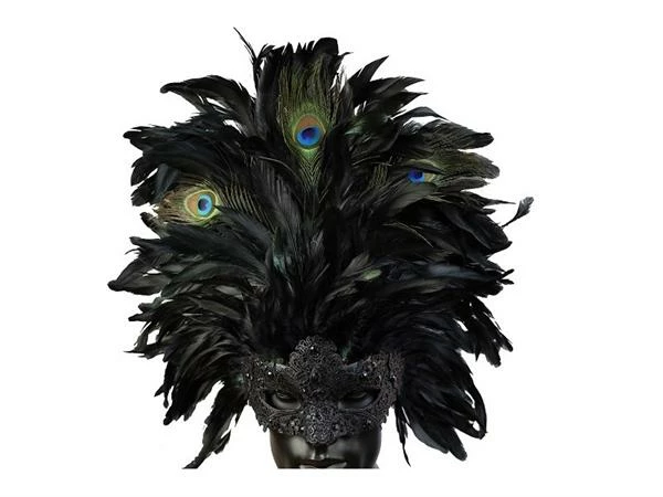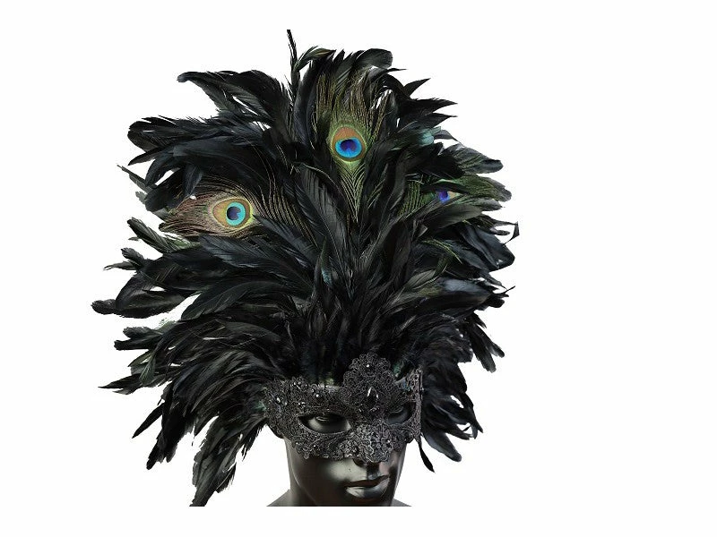 KBW Global Corp Venetian Mask With Coque & Peacock Feathers Masquerade Masks