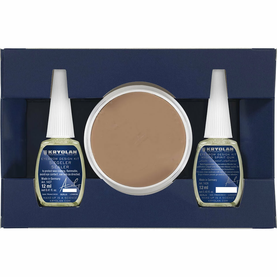 The Eyebrow Design Kit contains all necessary products to block away eyebrows. In the first step eyebrows are flattend using Hydro Gum, followed by the application of F/X Wax and then sealed with the included Sealer. Finally the area should be made up using either Ultra Foundation, TV Paint Stick, Supracolor, Dermacolor Camouflage or Vitacolor. For best results the foundation should be set with Translucent Powder. Detailed instructions enclosed.