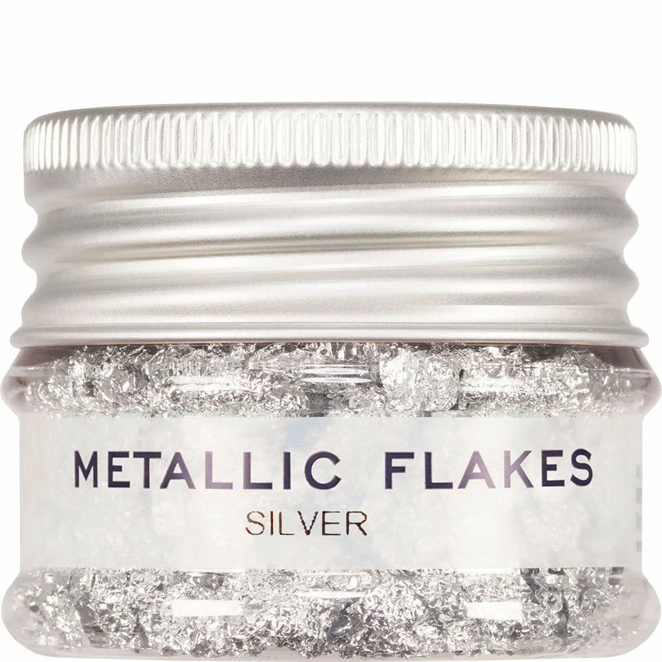 Metallic Flakes are very fine metal flakes to decorate artificial surfaces. Use Hydro Spirit Gum, Multi Gel or any grease foundation as a base to adhere Metallic Flakes.