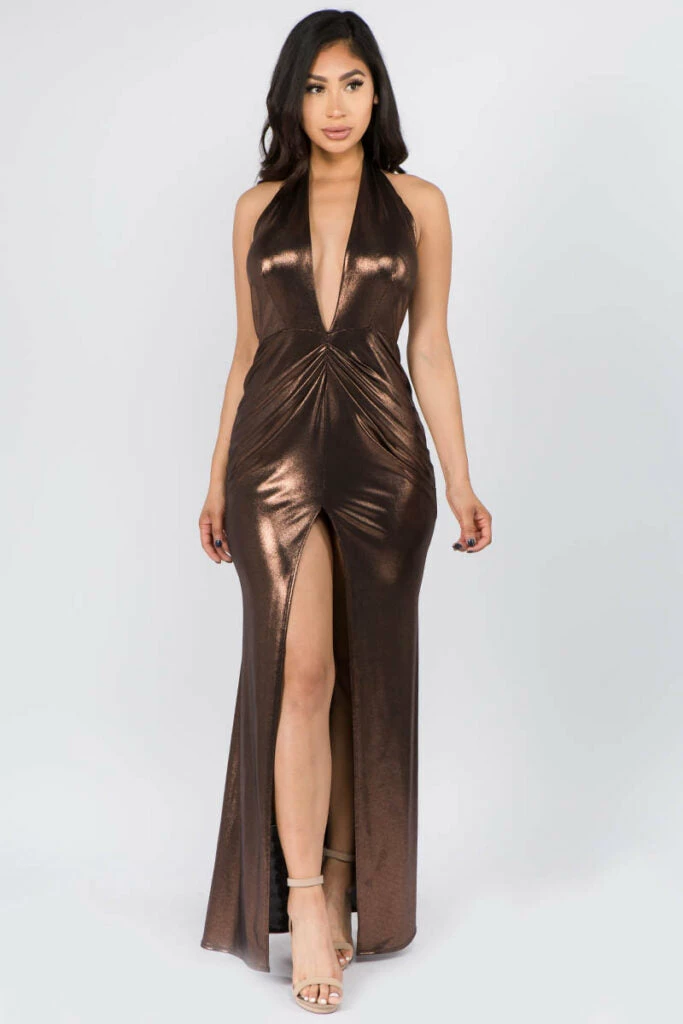 Be the first to review “Lets Go Apparel Decades Bronze Metallic Dress W/Pleat” Cancel reply