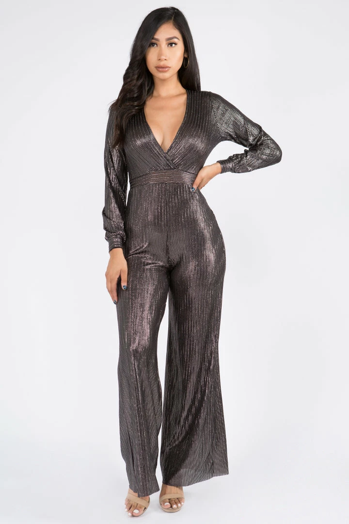 Lets Go Apparel Decades Wide Leg Jumpsuit Metallic