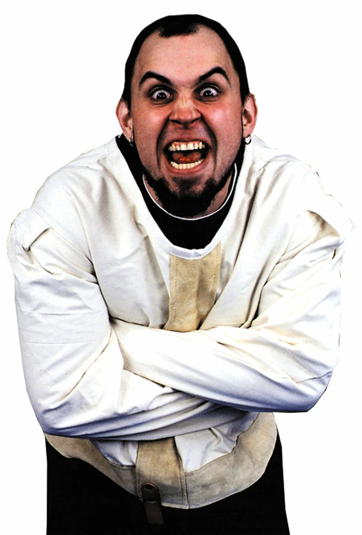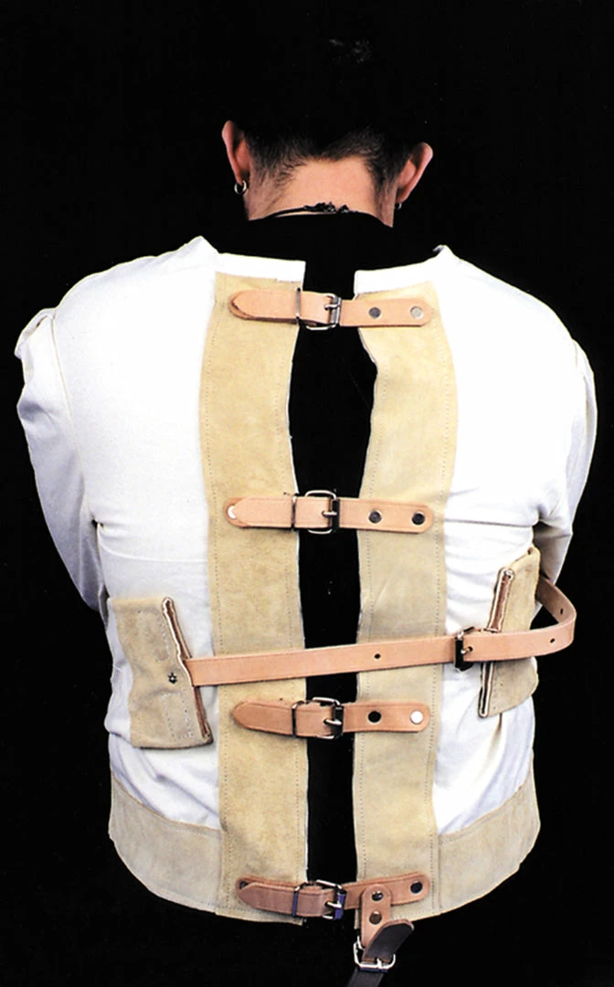 A genuine heavy canvas jacket with leather straps, metal buckles that can be passed out for examination. No matter how securely you’re strapped in the jacket, you can still escape in full view. Without question, this is the finest quality ever made. One size.