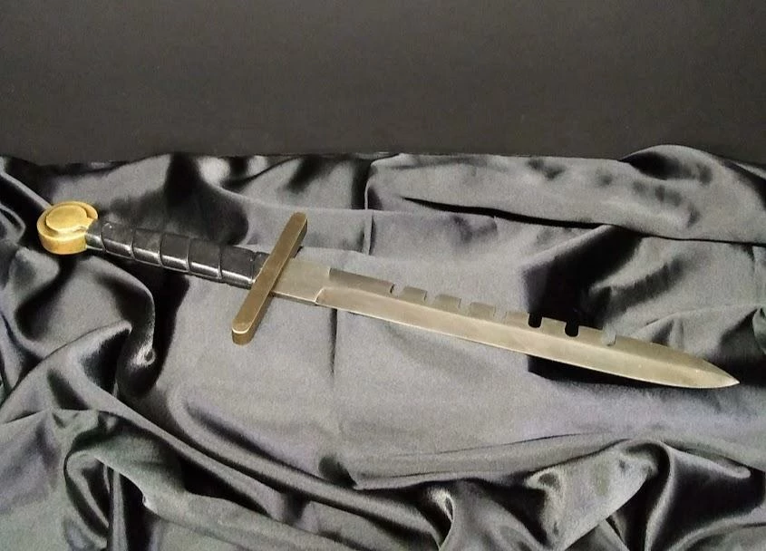 From Assassin’s Creed II: This sword breaker dagger is made from high carbon steel and features a leather, wire-wrapped handle.
