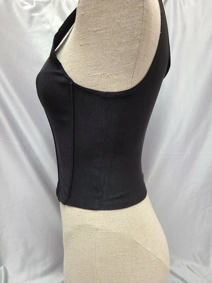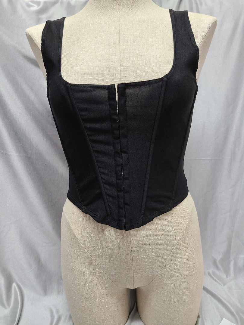 Vest with hook and eye front. Runs small, Mannequin wearing size Large measures