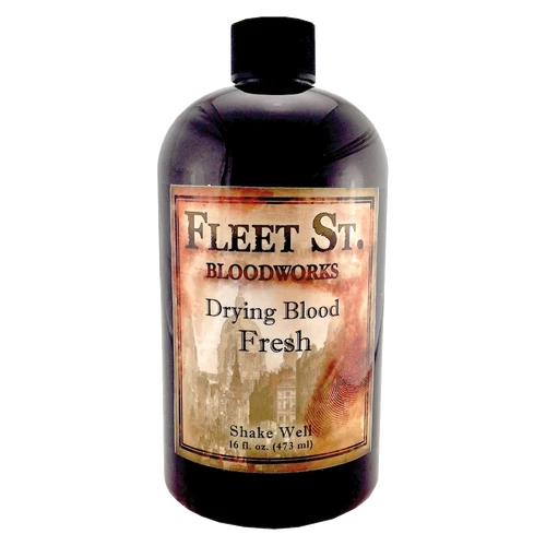 Drying Bloods are available in two colors: “Fresh”, a vibrant natural tone and “Dark” a deep moody blood tone that intermix to create your desired look. Use them with the Fleet Street Blood Pastes to add depth and texture to your blood work. Fleet Street Drying Bloods allow the makeup artist to layer the bloods to get a deep sense of color and realism.