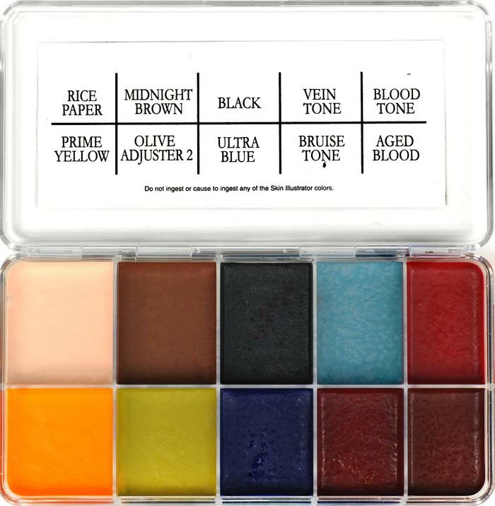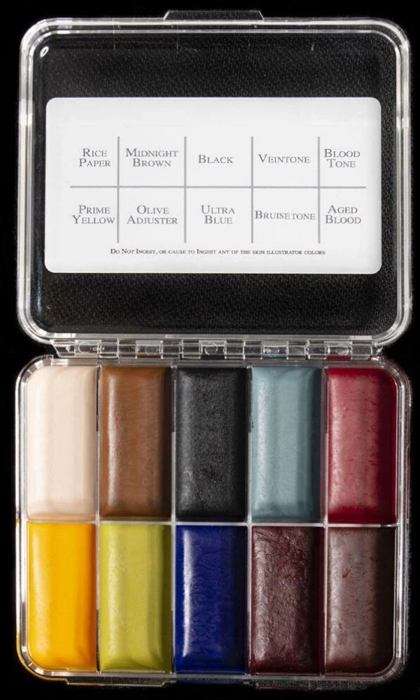 This palette was custom ordered by 2 time Oscar winner David LeRoy Anderson. This was used on the movie, “Dawn of The Dead”. David said the Zombie Palette’s color combination was just what he needed to color the dead. One of his favorite aspects of the palette is the, “…Awesome label – I love the tie!” Also available:  Skin Illustrator On Set Zombie Palette. Â