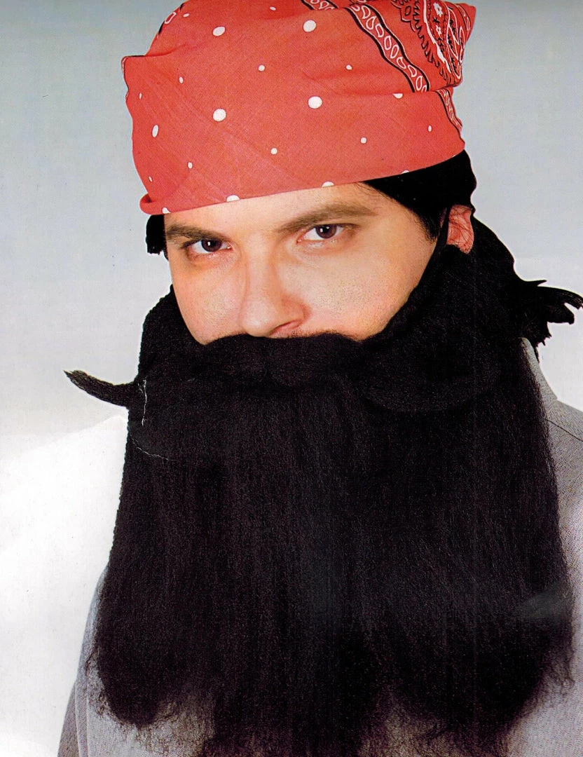 Black 14″ costume beard with attached moustache and elastic to secure.