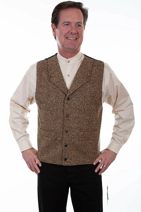 Scully Range Wear Vest Brown Herringbone Notched Lapel Western & Native American