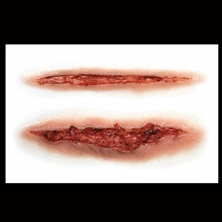 3D FX Transfers “Cut Throat”Applies with water! These will last all night and looks incredibly realistic. 3D FX Transfers, the revolutionary new prosthetic. This technology garnered Tinsley Transfers an Academy Award for Technical Achievement. Easy to apply, self blending, no need for any glues or messy adhesives and looks absolutely real.