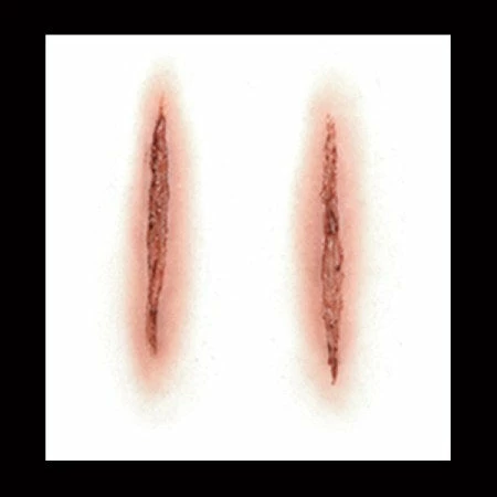 3D FX Transfers “Cutter”Applies with water! These will last all night and looks incredibly realistic. 3D FX Transfers, the revolutionary new prosthetic. This technology garnered Tinsley Transfers an Academy Award for Technical Achievement. Easy to apply, self blending, no need for any glues or messy adhesives and looks absolutely real.