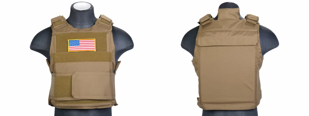 - Extras: 2 Airsoft ballistic plates and USA flag patch