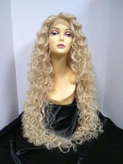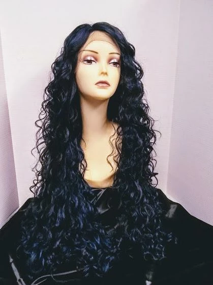 Long and curly 32.5 inches, lace front wig. Heat safe synthetic fibers.