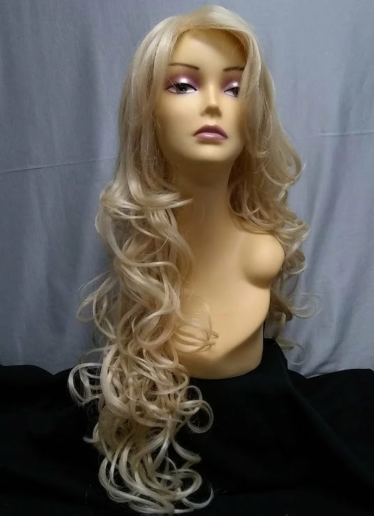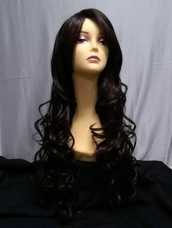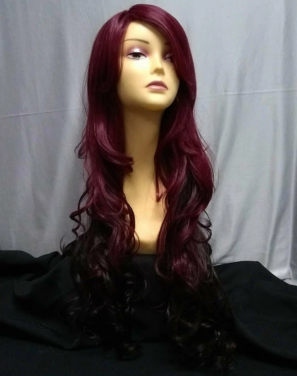 Curly layers from 6.25″ to 24.5″, heat resistant fibers. Colors: 1B Black, 4 Brown, White, 613 Blonde, DX4799 Maroon Multi, & Grey/60