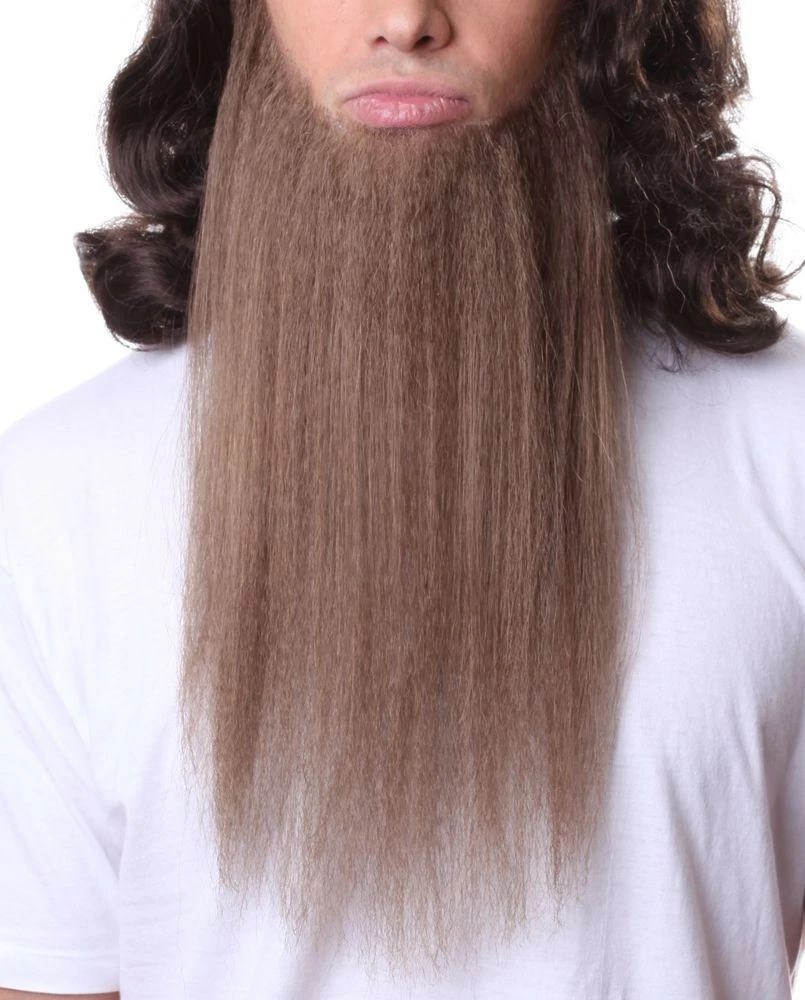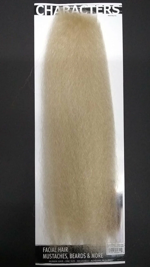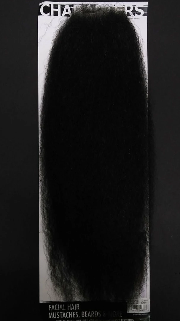 Human hair beard, hand tied on synthetic lace. Can be heat styled.
