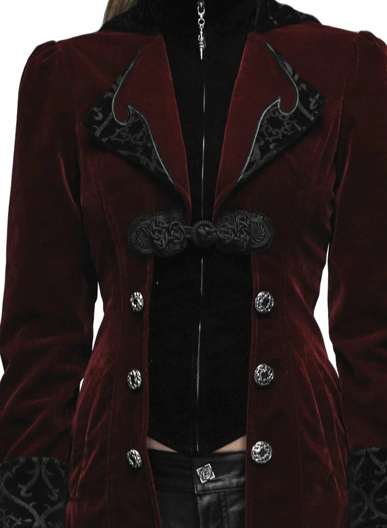 Western Fashion Steampunk & Victorian Gothic Coat W/Horn Lapel Burgundy