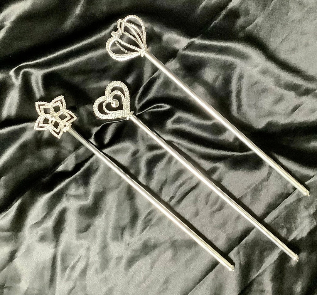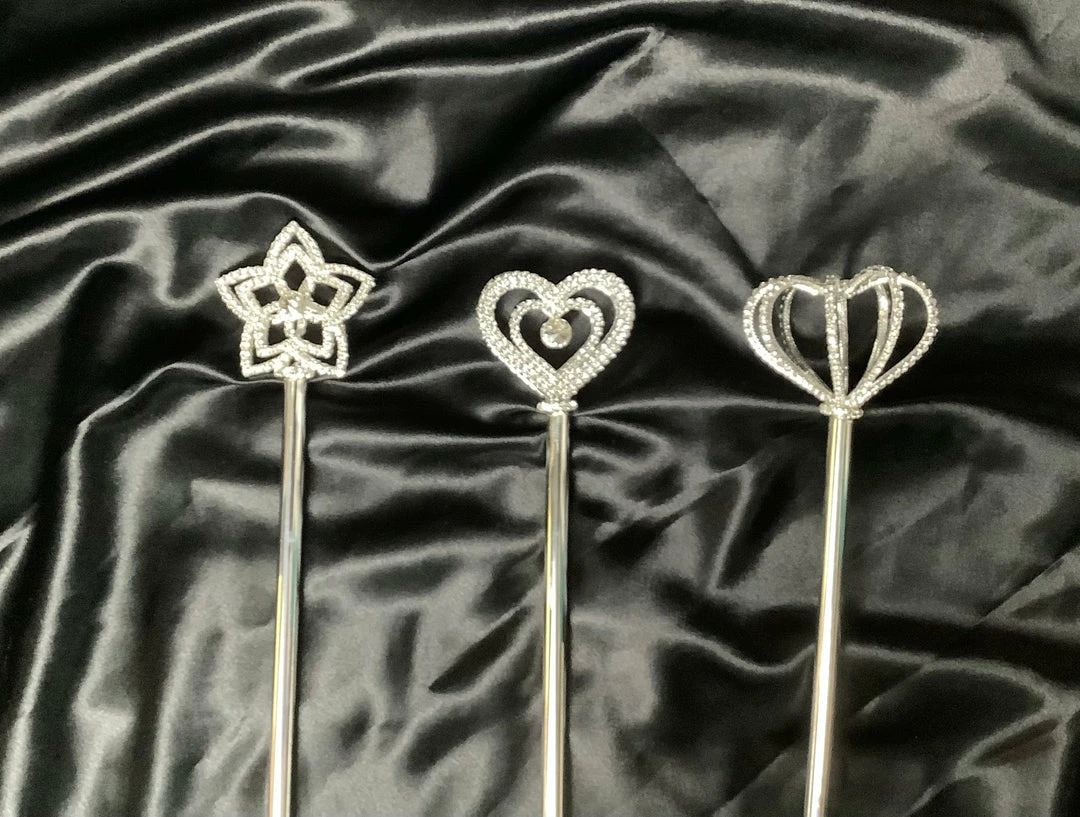 Rhinestone crystal scepter/wand. Approx 16 inches end to end. 3 Styles.